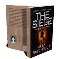 “A person stands in a dimly lit hallway with a bright light at the end, the title "The Siege" appears prominently above.”