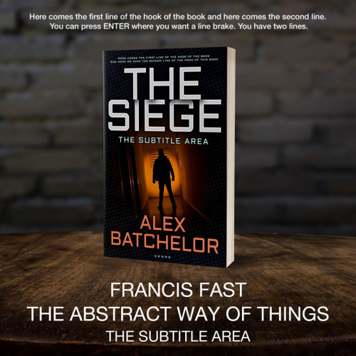 This book cover has 2 lines for the title, 1 line for the subtitle, 2 lines for the author, 2 lines for the hook, and finally 1 line for the genre.