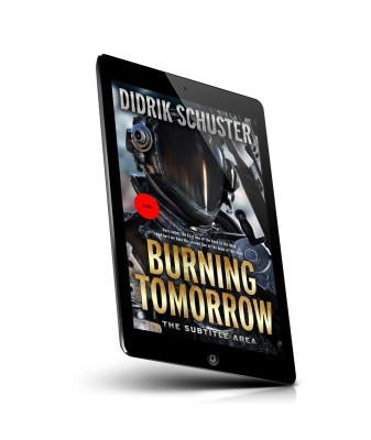 “An astronaut in a space suit appears on the cover, with a red circle labeled "Genre" and the title "Burning Tomorrow" in bold.”