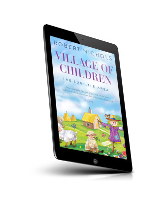 “Colorful cover showing a cheerful village with sheep, a cottage, and a scarecrow in a field.”