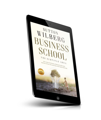 “Image of a book cover featuring a woman watering a tree inside a light bulb and the title "Business School" prominently displayed.”