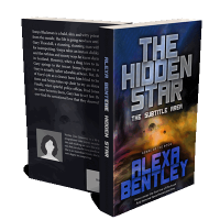 “A sci-fi book cover with a cosmic background, featuring planets and colorful nebulae. Bold metallic title text is at the top.”