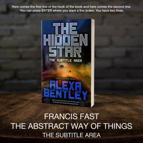 This book cover has 3 lines for the title, 1 line for the subtitle, 2 lines for the author, 2 lines for the hook, and finally 1 line for the genre.