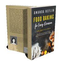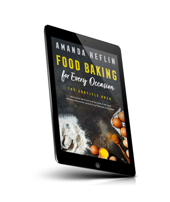 “A cookbook cover featuring baking ingredients like eggs, flour, and spices, with a rustic backdrop and bold, colorful typography.”