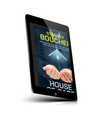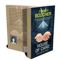“A person in a suit holds out cupped hands; an icon of a house floats above. The image has text for a book titled "House of Card."”