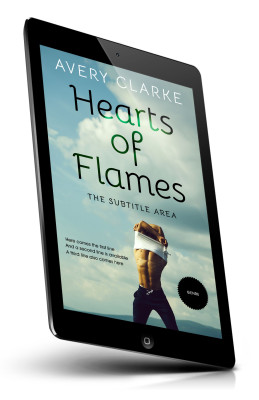 “A person lifting their shirt to reveal a toned torso against a cloudy sky background. The title "Hearts of Flames" is prominently displayed.”