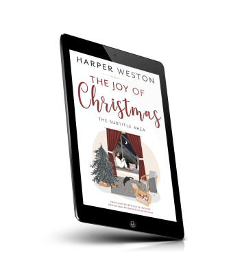 “A person sits on a cozy chair by a window reading a book, with Christmas decorations and gifts around. A snowy outdoor scene is visible.”