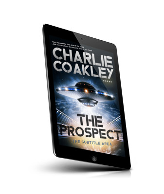 “A futuristic UFO hovering over a dynamic, electrified landscape, with a bold title and dramatic lighting effects.”