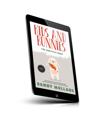 “A cover features a cute bunny holding a large carrot with a grass background and bold red and green text.”