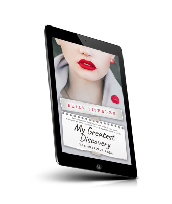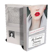 “A woman with bold red lipstick. Book cover design with note paper and text featuring "My Greatest Discovery".”