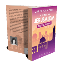“Colorful book cover featuring various buildings in Jerusalem with a sunset gradient background.”