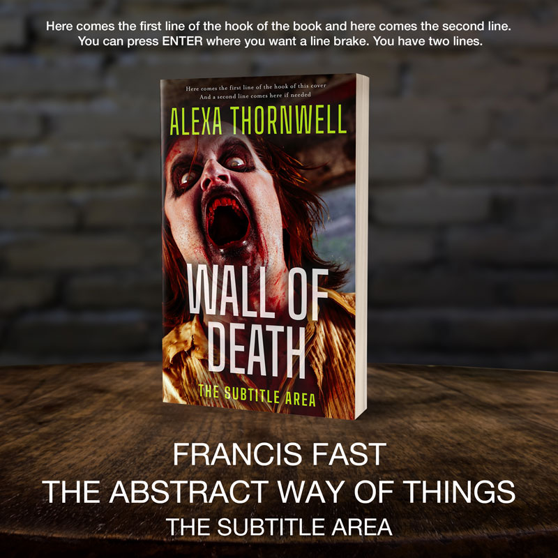 This book cover has 2 lines for the title, 1 line for the subtitle, 1 line for the author, 2 lines for the hook.