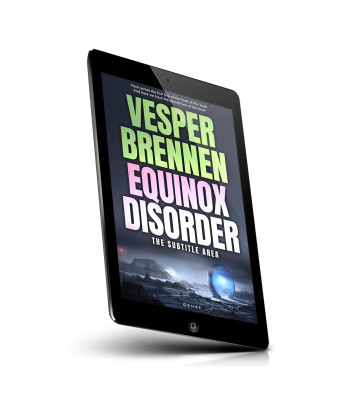 “Futuristic landscape with structures and mountains under a cloudy sky. Large, bold text covers the top half of the image.”