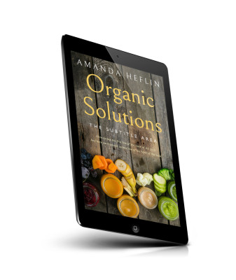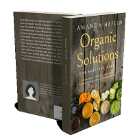 “Wooden surface with fresh fruits, vegetables, and jars of juices; a book title at the top.”