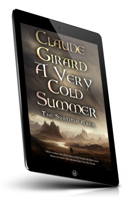 “A dramatic, cloudy sky over jagged, mountainous landscape with text overlaying the scene.”
