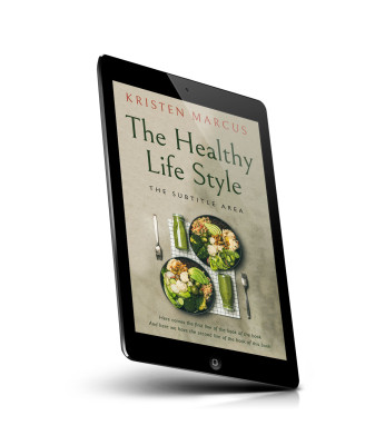 “The image shows a book cover featuring two plates of healthy food and a glass bottle with a green drink on a light background.”