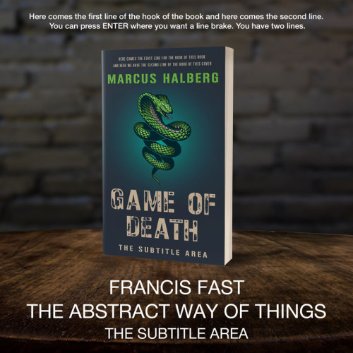 This book cover has 2 lines for the title, 1 line for the subtitle, 1 line for the author, 2 lines for the hook.