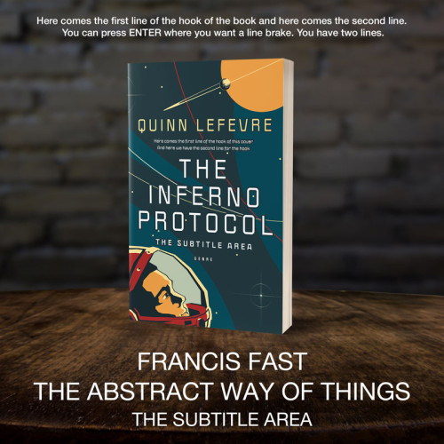 This book cover has 3 lines for the title, 1 line for the subtitle, 1 line for the author, 2 lines for the hook, and finally 1 line for the genre.