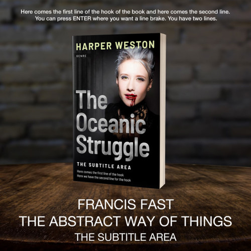 This book cover has 3 lines for the title, 1 line for the subtitle, 1 line for the author, 2 lines for the hook, and finally 1 line for the genre.