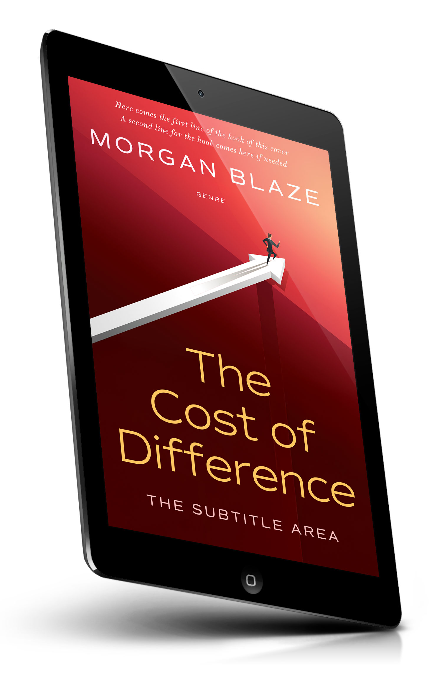Tags: minimalist, abstract, red gradient, geometric shapes, arrow, upward arrow, direction, progress, ambition, success, leadership, goal, growth, journey, path, runner, silhouette, perspective, modern design, motivation, premade cover, book cover design, self-publishing, ebook cover, print ready