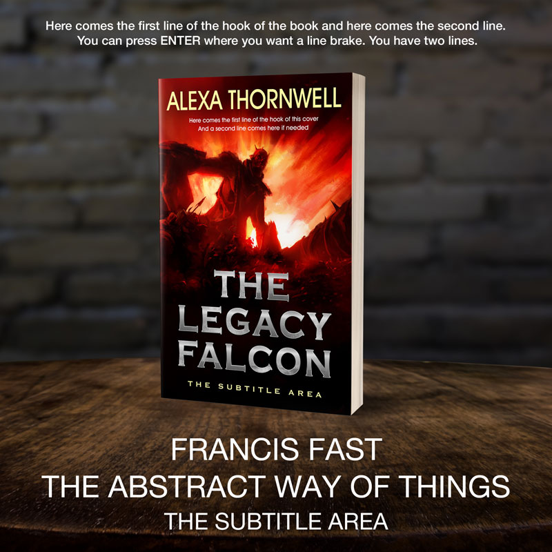 This book cover has 3 lines for the title, 1 line for the subtitle, 1 line for the author, 2 lines for the hook.