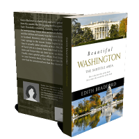 “A book cover featuring views of the White House and the Capitol Building, with a serene reflection in a pool.”