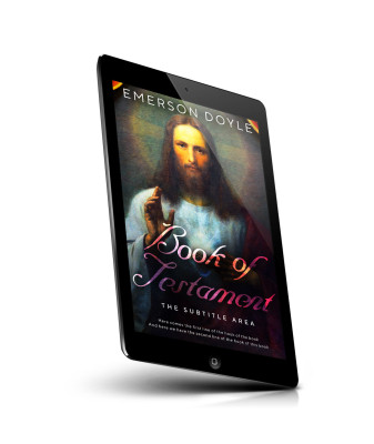 “An image of a book cover featuring a painting of a bearded man with long hair, overlaid with the title "Book of Testament."”