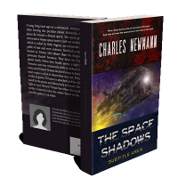 “A massive spaceship glides through space against a backdrop of stars, with a dark and mysterious color palette.”