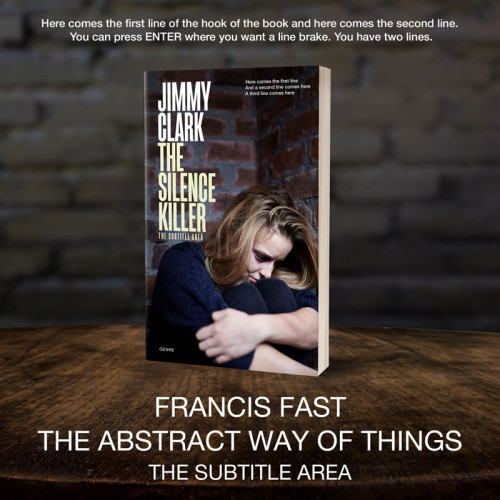 This book cover has 3 lines for the title, 1 line for the subtitle, 2 lines for the author, 3 lines for the hook, and finally 1 line for the genre.