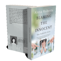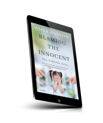 “A young girl covers her face with her hands as two adult hands point at her. The background is blurry and light.”