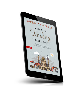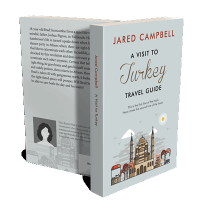 “A travel guide cover featuring a stylized depiction of a mosque and surrounding buildings against a light blue background.”