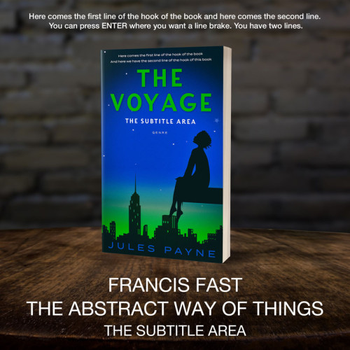 This book cover has 2 lines for the title, 1 line for the subtitle, 1 line for the author, 2 lines for the hook, and finally 1 line for the genre.