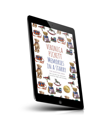 “Colorful book cover with teddy bears, toy trains, and drums around the central title.”