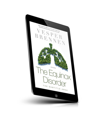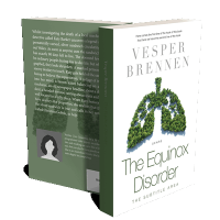 “A book cover showing trees forming the shape of lungs, with the title "The Equinox Disorder" and the author "Vesper Brennen."”