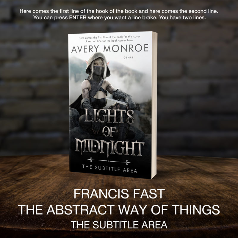 This book cover has 3 lines for the title, 1 line for the subtitle, 1 line for the author, 2 lines for the hook, and finally 1 line for the genre.