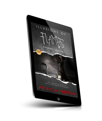 “A hooded figure stands next to a crib, holding an open book in a dark, mysterious setting.”