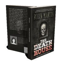 “Grungy book cover showing a human skull within a stone archway, dark and ominous design.”