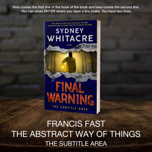This book cover has 2 lines for the title, 1 line for the subtitle, 2 lines for the author, 2 lines for the hook, and finally 1 line for the genre.