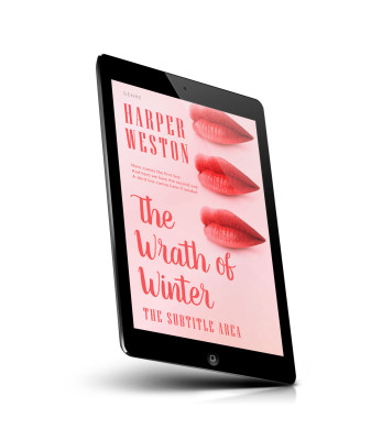 “A book cover with pink lips and pink-red text. The background is light pink with stylized text and lips.”