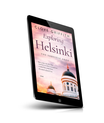 “A book cover showing a domed building under a pastel-colored sky, with the title "Exploring Helsinki" in prominent lettering.”