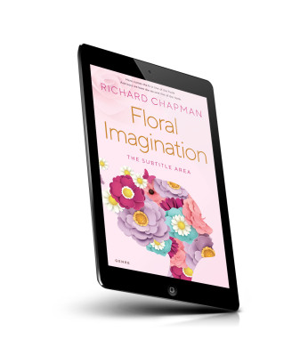 “Silhouette of a head filled with colorful flowers and a butterfly, set against a light pink background.”