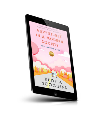 “A colorful book cover featuring a car on a road surrounded by trees, under a pink sky and clouds.”