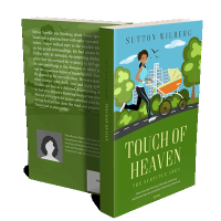 “A woman jogs in a park while pushing a stroller, with buildings and trees in the background. The book cover is green with bold text.”