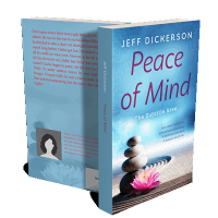 “A serene book cover showing stacked stones and a pink lotus flower on a sand surface with a blue patterned background.”