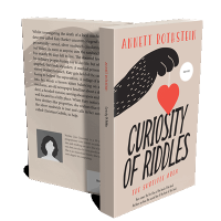 “A hand in a black glove holds a red heart on a string against a beige background with bold, black text.”