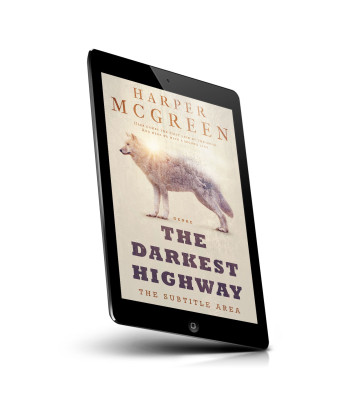 “A wolf stands against a textured beige background on a book cover titled "The Darkest Highway."”