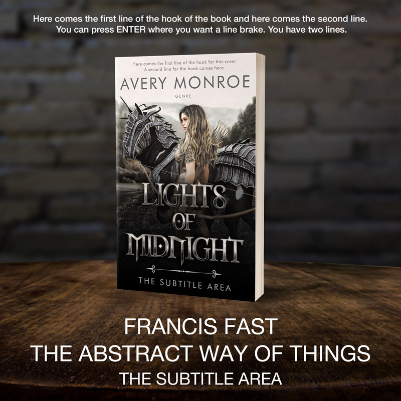 This book cover has 3 lines for the title, 1 line for the subtitle, 1 line for the author, 2 lines for the hook, and finally 1 line for the genre.