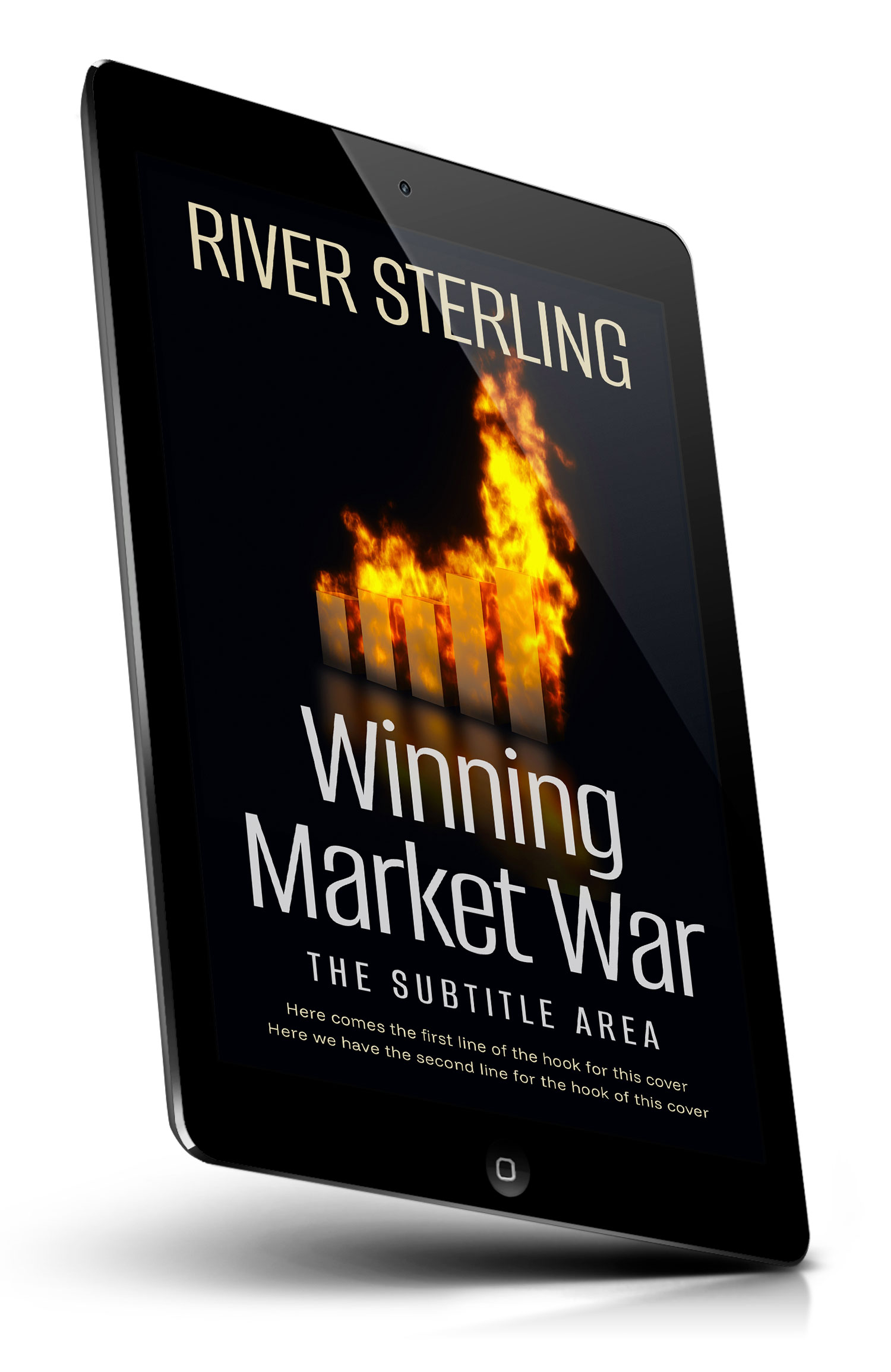 “A dark book cover with rising bar chart engulfed in flames, suggesting fierce competition and rapid growth.”