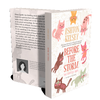 “Illustrated cover with playful, colorful cats surrounding the book title and author information on a floral patterned background.”