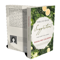 “An elegant book cover with greens, lemons, and limes arranged around the edges on a light background.”